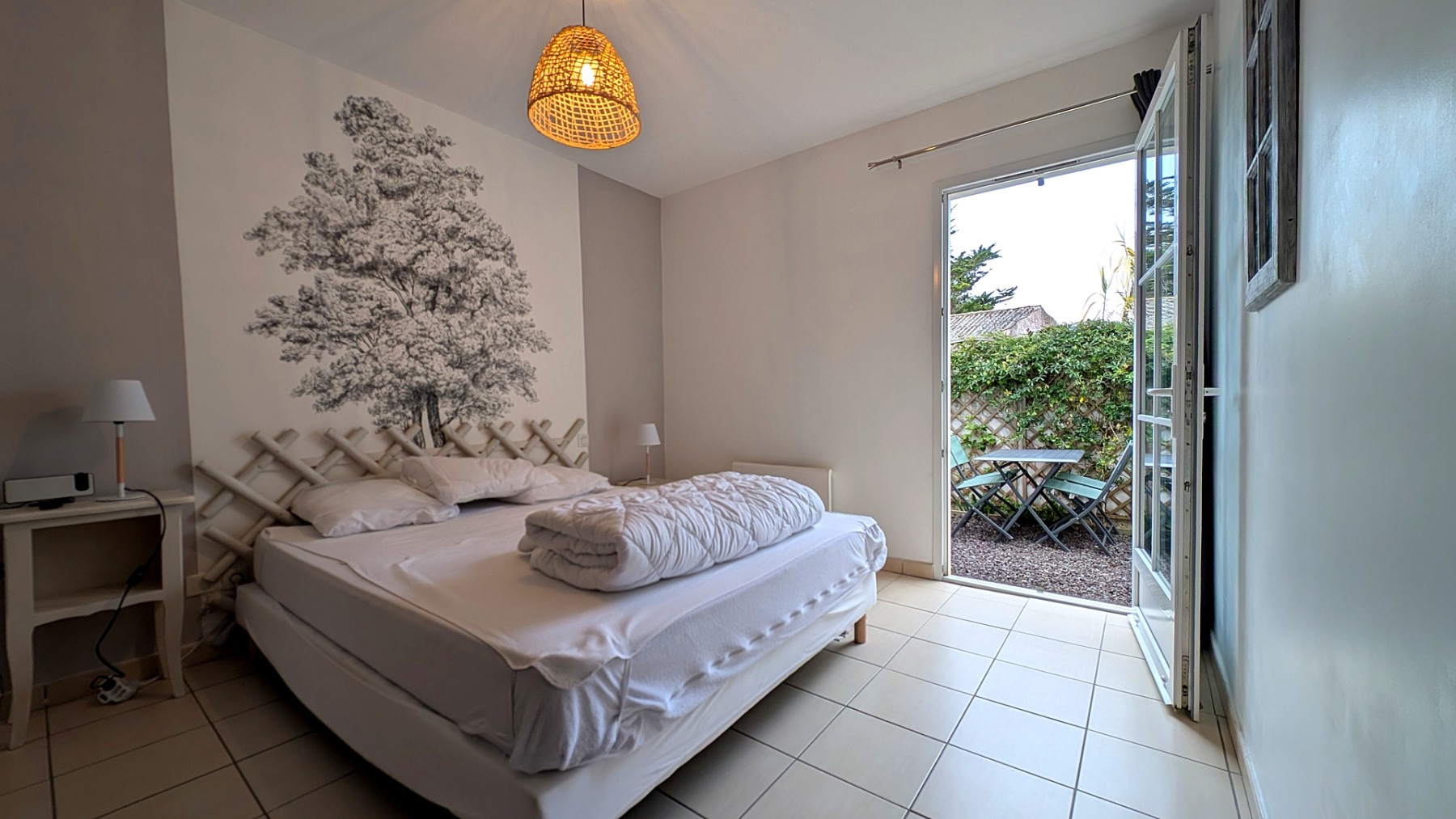 - 1 chambre spacieuse avec 2 lits de 90×200 (ou 1 grand lit de 180×200), 2 chevets et grande armoire-penderie